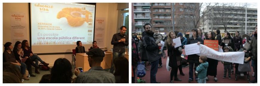 El passat 14 de març van organitzar una cassolada davant de l'Ajuntament per demostrar el seu rebuig i descontentament amb el model pedagògic que proposa la dotzena escola.