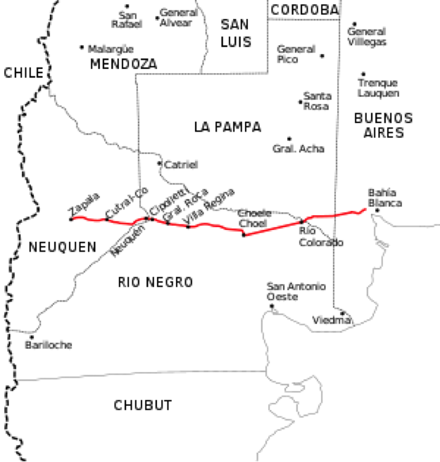 Mentre el Capità Fitzroy baixava per la costa d' Argentina a la regió de la Patagònia, Darwin va desembarcar a Bahia Blanca, en la desembocadura del Riu Negre. Volia anar a veure unes roques a la Pampa, on els nadius l'hi van explicar que hi havia una gran quantitat d'ossos enterrats a terra.