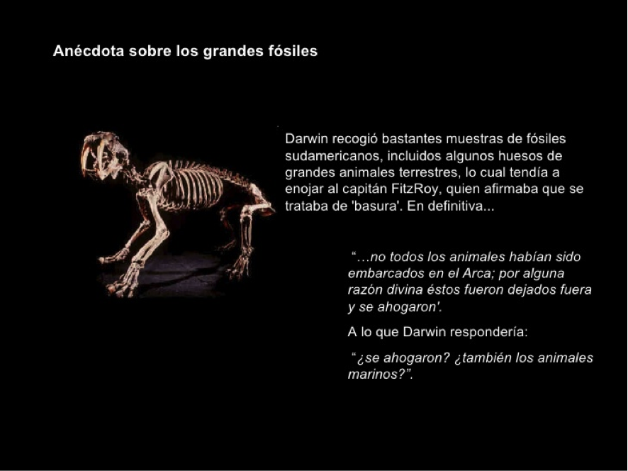 La ciència més avançada de l'època de Charles, considerava els fòssils simplement com les restes d'animals extingits i una manera per saber l'edat aproximada de quan varen viure. Però per Darwin aquella troballa va ser alguna cosa més: la semblança d'aquells fòssils amb animals que existien en aquella època, era un pas cap a l'Evolució de les Espècies.