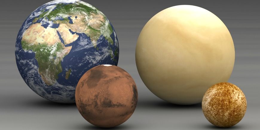 Mercuri: és un planeta més petit que la Terra però més gran que la Lluna, és el segon planeta més petit del Sistema Solar. Està ple de cràters pels impactes dels meteorits i tot i estar molt proper al Sol, és un planeta força fred.