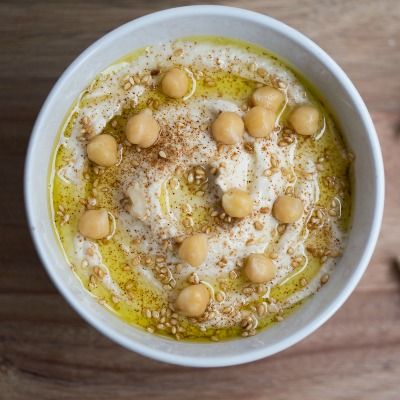 - Si cal, una mica d'aigua mineral per ajustar la textura (ha de quedar cremosa) o si heu cuit els cigrons a casa, reserveu part de l'aigua de cocció (o demaneu-ne a la parada de llegums en comprar els cigrons).