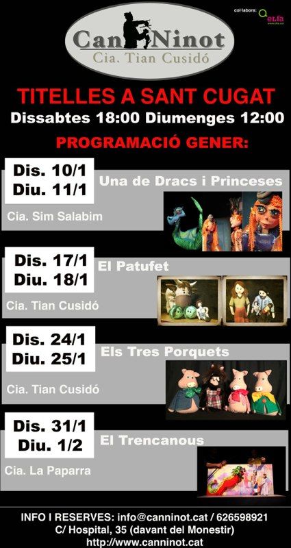 Cada cap de setmana la Cia. Tian Cusidó ens porten a Can Ninot espectacles de titelles per a nens i nenes.