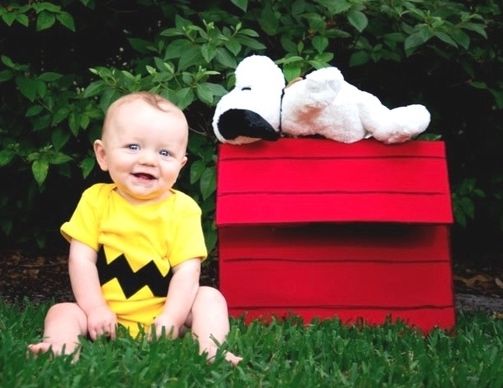 Disfressa de Charlie Brown: tan senzill com vestir al nen o nena amb pantalons negres i samarreta groga a la que haurem enganxat o cosit una franja en ziga-zaga de feltre negre.