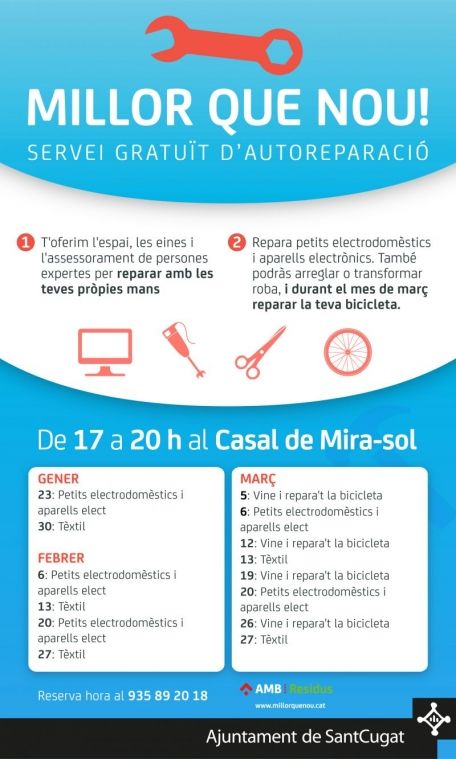 Contribueix a la sostenibilitat allargant la vida útil de diferents aparells de la llar: aprèn a reparar petits electrodomèstics i aparells electrònics, o tèxtil... Fins i tot la bicicleta!