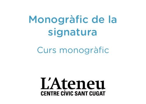 El monogràfic de la signatura s'impartirà el divendres 6 i 20 de febrer de 17h a 20h