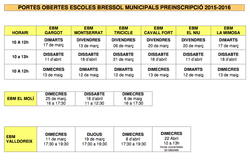 Tercera de les quatre jornades de portes obertes a la llar d'infants de Valldoreix per a la preinscripció 2015-2016, de 17.30 a 19.30 h.