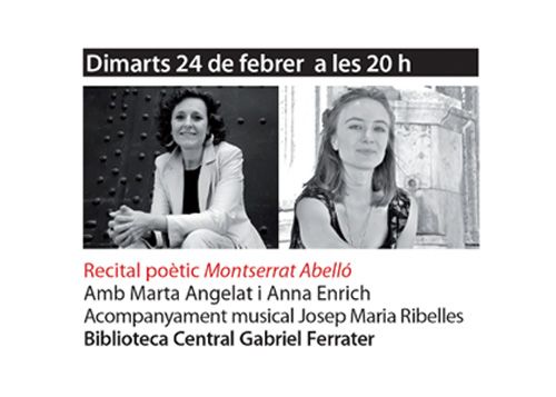 Veniu a la Biblioteca Central Gabriel Ferrater per al recital poètic Montserrat Abelló, amb Marta Angelat i Anna Enrich, i acompanyament musical de Josep Maria Ribelles.