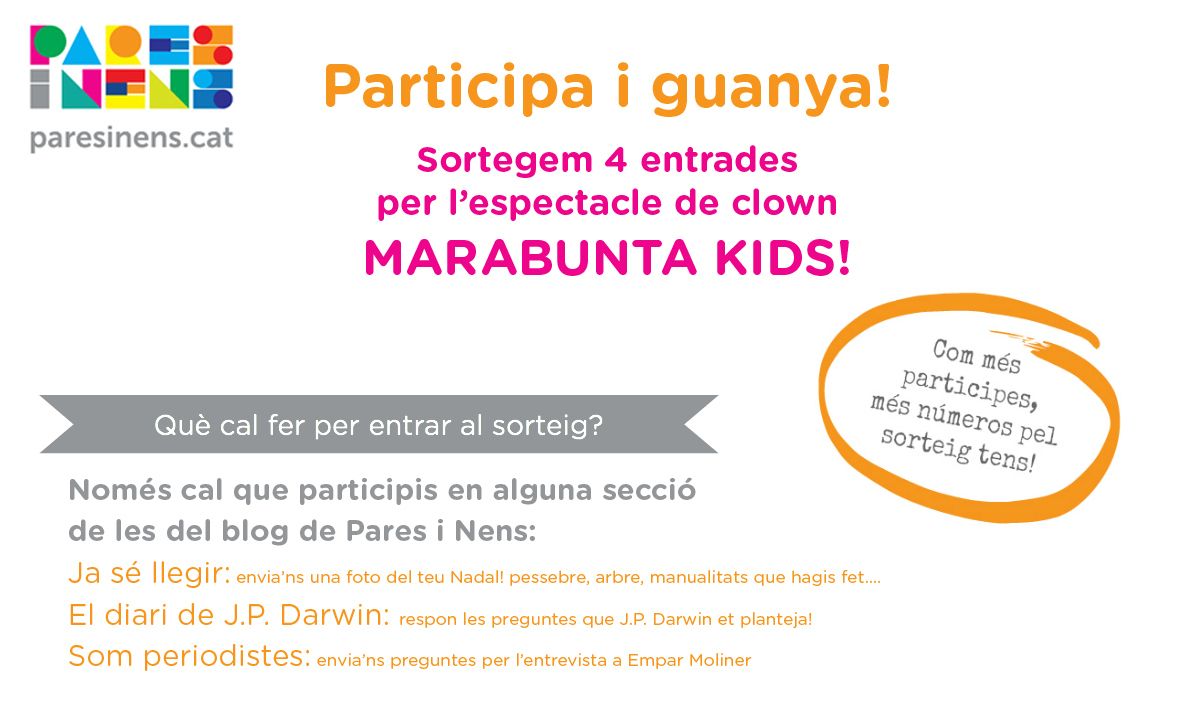 Participeu al sorteig de Nadal fins el 31 de desembre. Entre totes les aportacions a les diferents seccions del blog sortegem 4 entrades per anar a veure Marabunta Kids a la Casa de Cultura de Mira-sol.