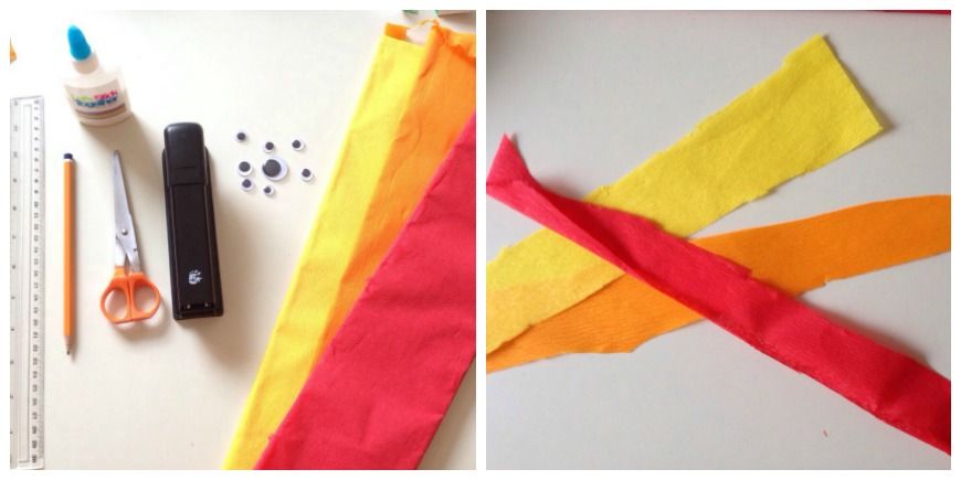 - Grapa el papel de seda formando las llamas de fuego del dragón.