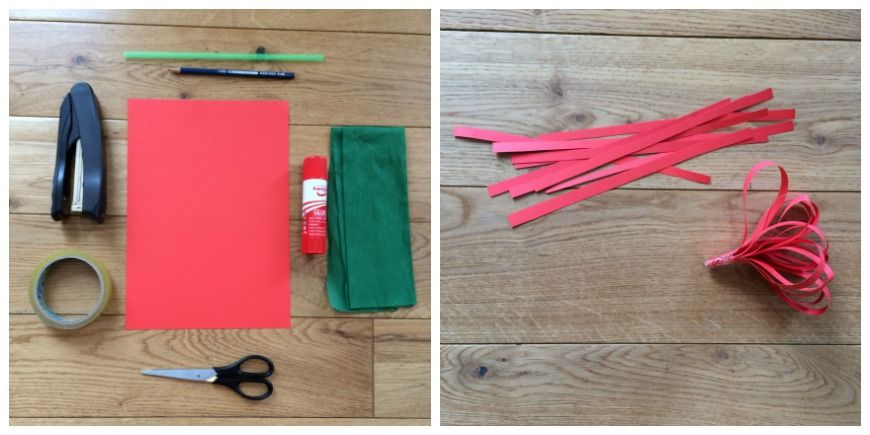 - Junta las tiras rojas y engánchalas con el cel·lo