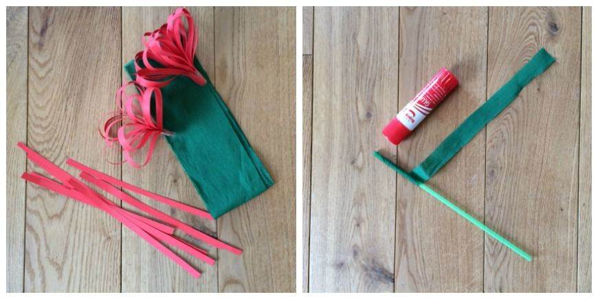 - Engancha el papel pinotxo verde a la canyeta con pegamento blanco.