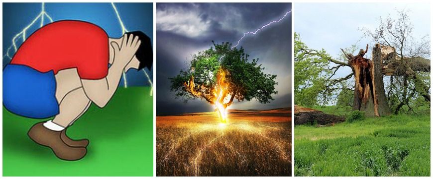 - Si estamos derechos al campo, seremos el punto más alto y por lo tanto podemos hacer de pararrayos de la zona donde estamos. Por eso tenemos que adoptar la posición descrita anteriormente. Esta es mejor que estar estirados en el tierra, puesto que al estar estirados expondremos más superficie para atraer el rayo.