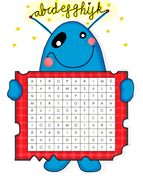 Hola niños y niñas! Sabéis cuáles son los nombres de los continentes? A ver si los encontráis en esta sopa de letras: