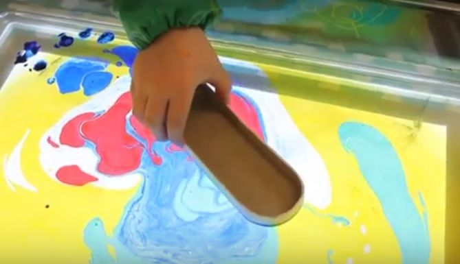 El agua nos sirve como pintura pero también se puede pintar encima. Un golpe más con colorantes alimentarios o con elementos líquidos con densidades diferentes (por ejemplo aceite) podemos hacer formas sobre el agua. Son "pinturas" móviles extraordinarias. Si os queréis animar, os proponemos una bandeja transparente que además podréis poner sobre una mesa de luz para que la creación todavía tenga más fuerza.
