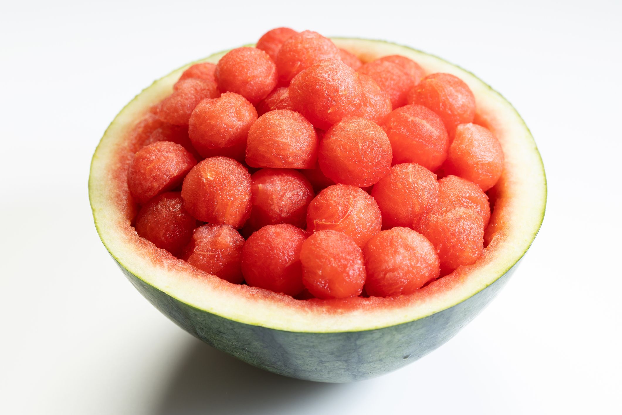 - Hacemos las bolas de la sandía y el melón con un vaciador.