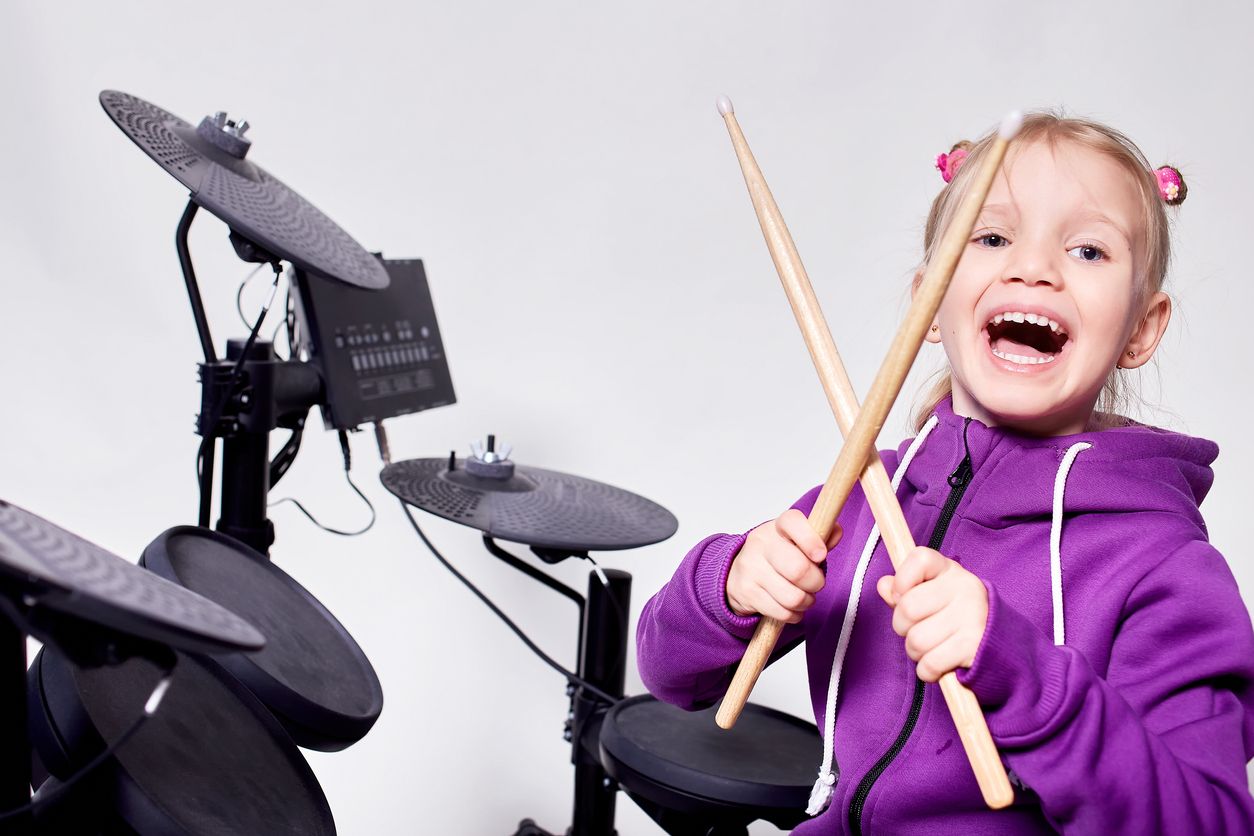 - Fomenta la creatividad: La música estimula la zona derecha del cerebro donde se alojan los sentimientos y las habilidades visuales y sonoras. Además, la música incrementa la imaginación del niño y las emociones que enriquecen su mente, dos hechos que incrementan su creatividad. Según los expertos uno de los mejores instrumentos para fomentar la creatividad es la batería, a través de controlar el ritmo y el tempo de cada canción.