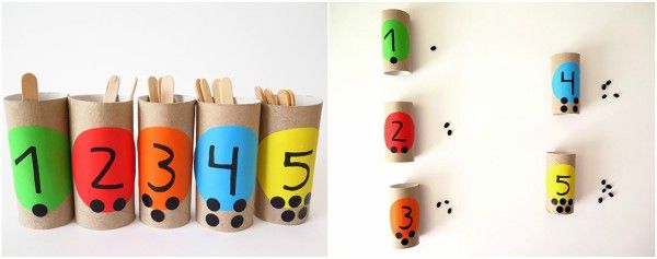 A la hora de aprender los números, desde casa también podemos ayudarlos con diferentes materiales reciclados y propuestas. Aún así, no hace falta que comentamos ni explicamos "ahora-vamos-a-aprender-los-números", sencillamente, puede ser una propuesta más por una tarde de lluvia, cuando ya están aburridos de todo.