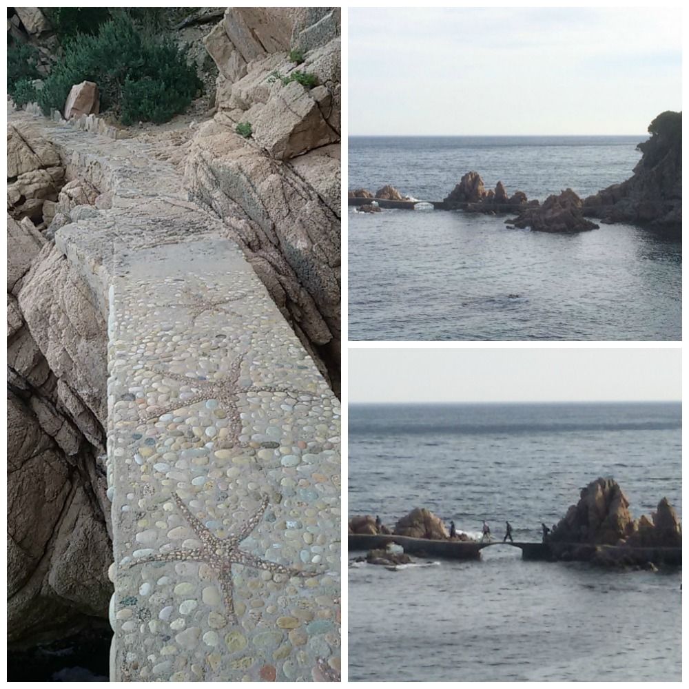 La cala es diferente de la mayoría de las calas de la Costa Brava. El que la hace especial es que encontramos unos puentes que nos introducen hacia el mar, como si fuera una pasarela que sale de escollos naturales y que mediante construcciones nos permite recorrer un trozo mar adentro.