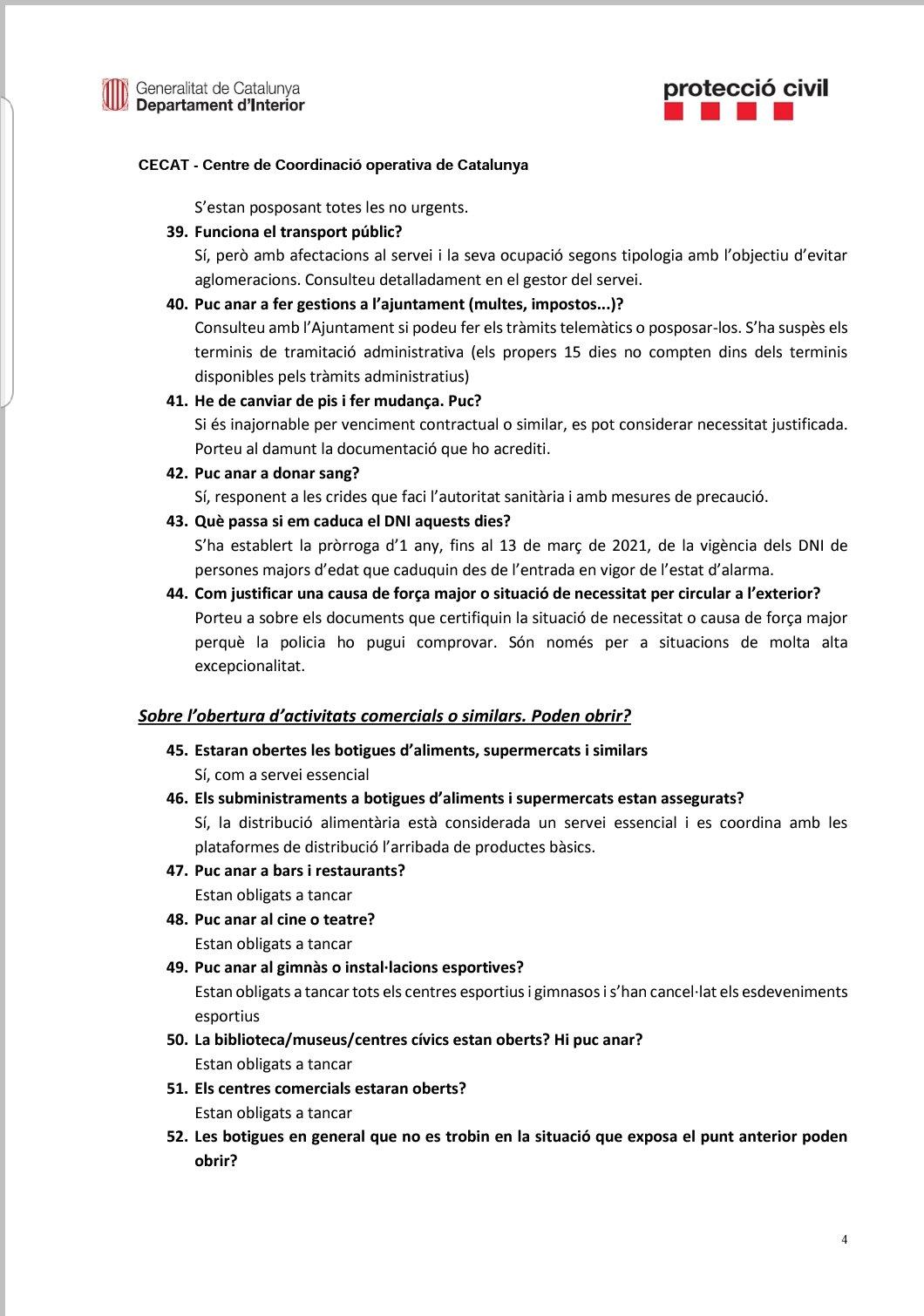 Unes respostes que es van actualitzant periòdicament per adaptar-se als canvis d'escenari que es van succeïnt. Compartim les més recents, difoses dijous, 19 de març, a la tarda, a les xarxes per part de Protecció Civil.