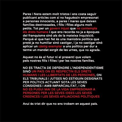 Pares i Nens recolzem la manifestació per l'alliberament dels presos polítics