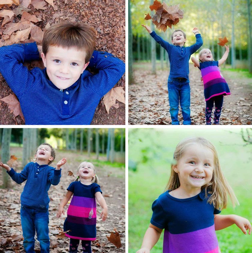 Després de les presentacions i d'explicar a en Jan i la Berta el que faríem, ens va dir quin seria el millor lloc per començar, tenint en compte la llum, els colors, etc. La Paula se'ls va posar ràpidament a la butxaca: correr, amagar-se, tirar fulles, activitats per divertir-se mentre feien les fotografies. L'estona va passar volant i els nens van gaudir molt. El resultat: aquestes fotos tant xules que veieu, són espectaculars de llum, de colors i d'expressió dels nens! Jo mai aconsegueixo fer una foto així, per això no les tenia totes i pensava que seria molt difícil que col·laboressin.