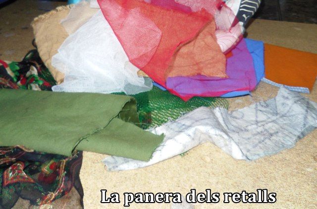 La Panera dels Retalls de roba és molt divertida perquè et permet jugar a "TAT" amb els nens i garanteix rialles. Hi tenim tot tipus de retalls amb colors i textures diferents: tul, malla, saca, un mocador de coll, folre polar, llana dels pirineus, un jersei tallat, seda, viscosa, vellut i cotó. Les experiències associades al tacte dels teixits amb la pell són increïbles i valen molt la pena.