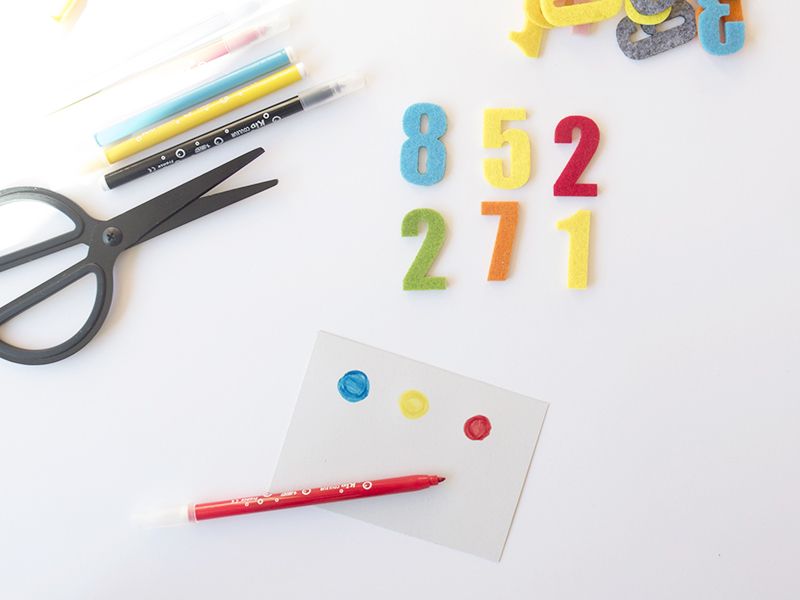 Pel tutorial us he preparat 3 mostres: 2 de senzilles, la de color i numèrica, i 1 de complexa, la que combina números i colors, però com veieu només he fet servir un sol material, els números de feltre. No ens cal tenir 10 materials diferents, podem utilitzar el que tinguem per casa.