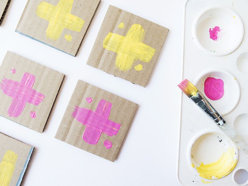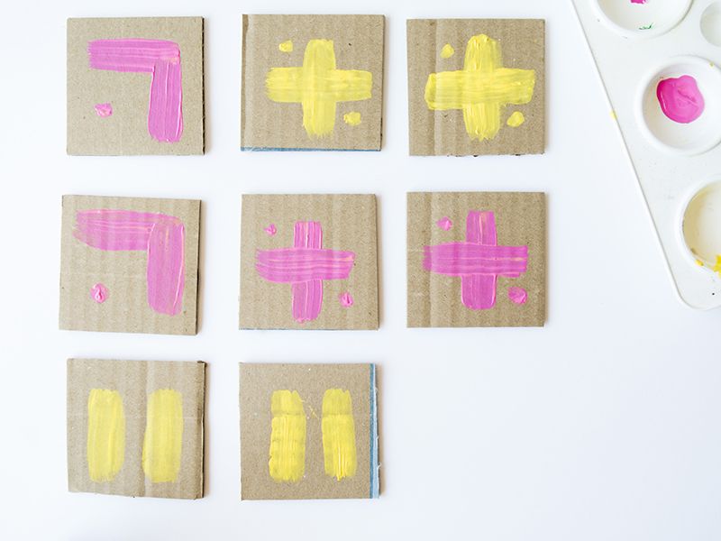 - Pinta les peces amb un estampat, una lletra o feu un dibuix per duplicat. La meva recomanació és que si ho fan ells, no sigui una cosa molt complicada com podria ser un dibuix amb molts detalls perquè si decidiu fer unes quantes peces, possiblement s'acabi cansant.