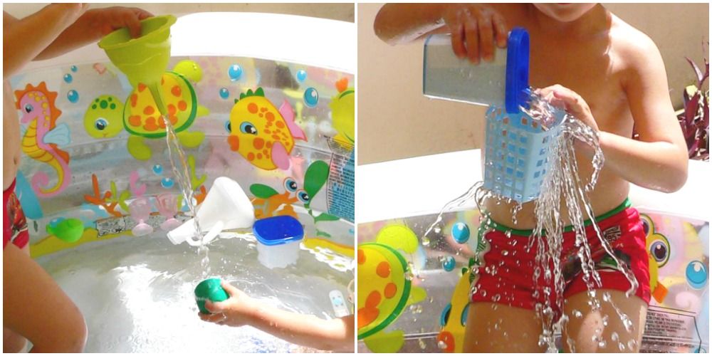 Aquest és un clàssic molt interessant, ja que posant-lo en pràctica, els més petits aprenen conceptes matemàtics com ple-buit, gros-petit, la relació entre el tamany dels recipients i la quantitat d'aigua que hi cap, ajuden a anticipar les conseqüències del que passarà si posen massa líquid a un recipient ple, a un que tingui forats, etc. Tota una safata d'experimentació científica ben fresqueta i divertida.