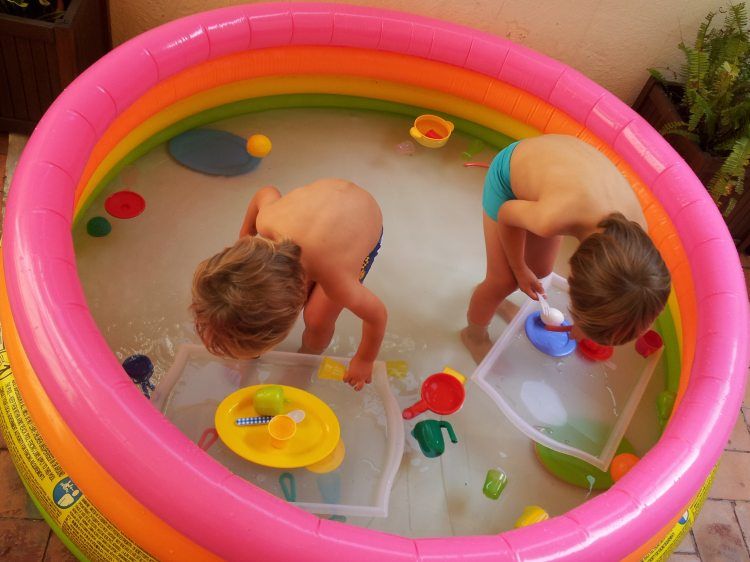 A l'estiu, quan fa tanta calor, l'única opció per a fer-lo més passador, és posar-nos en remull. A casa, fem servir una piscineta inflable que ocupa gairebé tota la sortida que tenim i que no ens dona cap opció a nedar, de manera que hem hagut de buscar maneres d'entretenir-nos-hi.