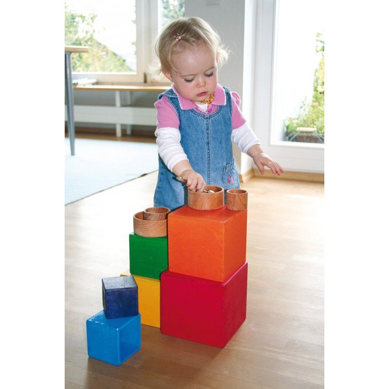Tan senzill com polivalent i divertit. Un conjunt de 6 cubs de fusta en mides escalades. Són fàcilment apilables i encaixables.