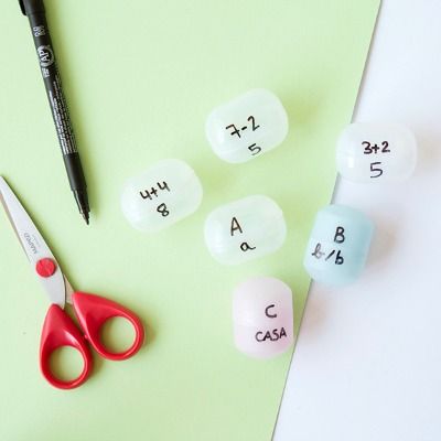 El que es tracta és de posar a la part superior una suma, una lletra o una paraula, que vagi relacionada amb el número, la lletra o la paraula de la part de baix.
