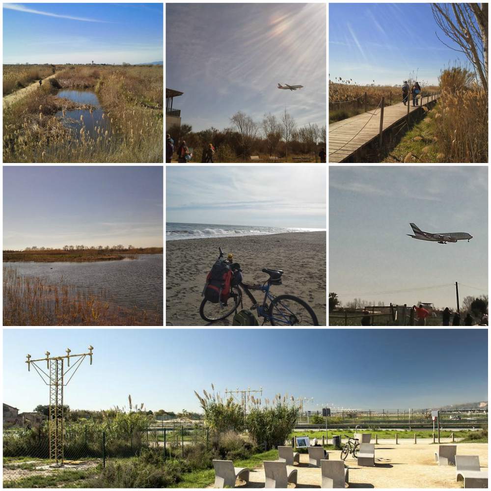 El que fa diferent aquesta ruta d' altres és la seva situació al costat de l'aeroport del Prat. Al llarg de part del recorregut sentim l'acompanyament de fons del soroll dels motors del avions que volen baix. Veure'ls i sentir-los de tant a prop, mentre aterren o s'enlairen, és un gran experiència mentre pedalem entre canyissars, un contrast entre la gran ciutat i la natura.